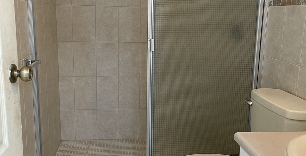 1 Baño completo con puertas corredizas en la ducha y lavamanos con mueble.